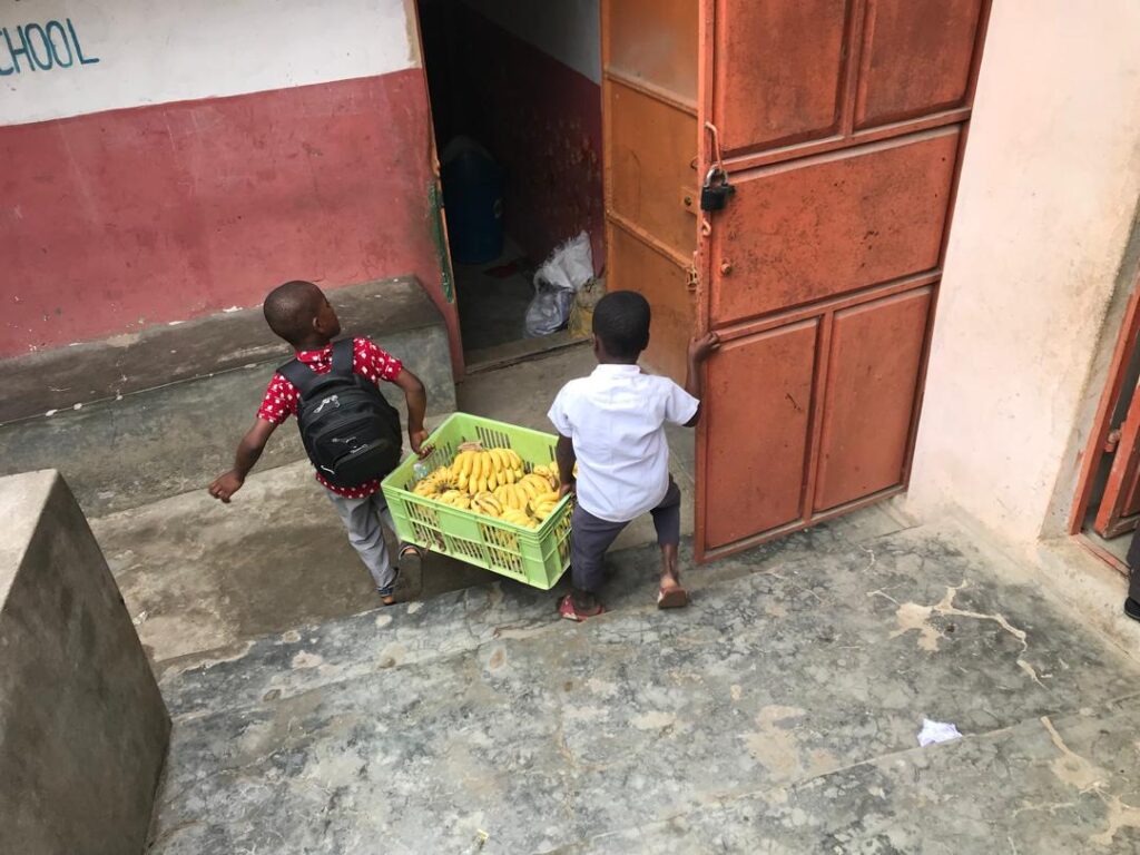 Während der Hausbau voranschreitet, geht in der Schule alles weitestgehend seinen gewohnten Gang. Der von zwei neuen GuDingUs angestoßene Obsttag in der Schule findet weiterhin großen Anklang. Jeden Donnerstag organisiert Alexander einen großen Korb Obst – besonders beliebt sind Bananen (“kids love the fruit, especial banana”).