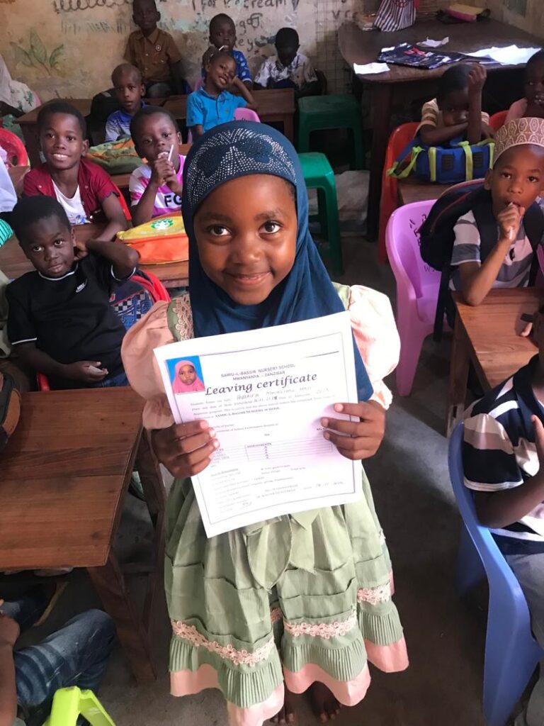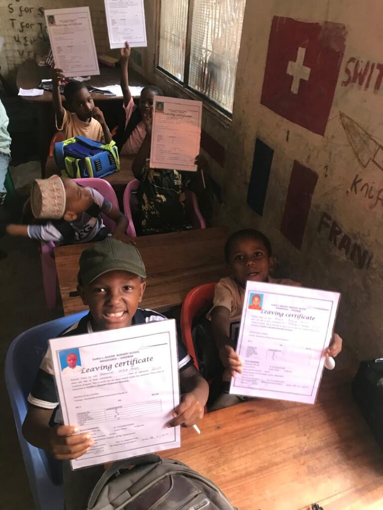 Im Kindergarten auf Sansibar haben die Winterferien begonnen. Für die großen Kinder, die ab dem kommenden Jahr die primary school besuchen, bedeutete dies, dass ihr letzter Kindergartentag groß gefeiert wurde. Jedes Kind hat ein “leaving certificate” erhalten und ihr Abschied wurde mit einer extra Portion Pilau gefeiert. Wie wir auf den Bildern sehen, die wir von Naima erhalten haben, sind sie sehr stolz auf sich und strahlen bis über beide Ohren – zu Recht, wie wir finden!